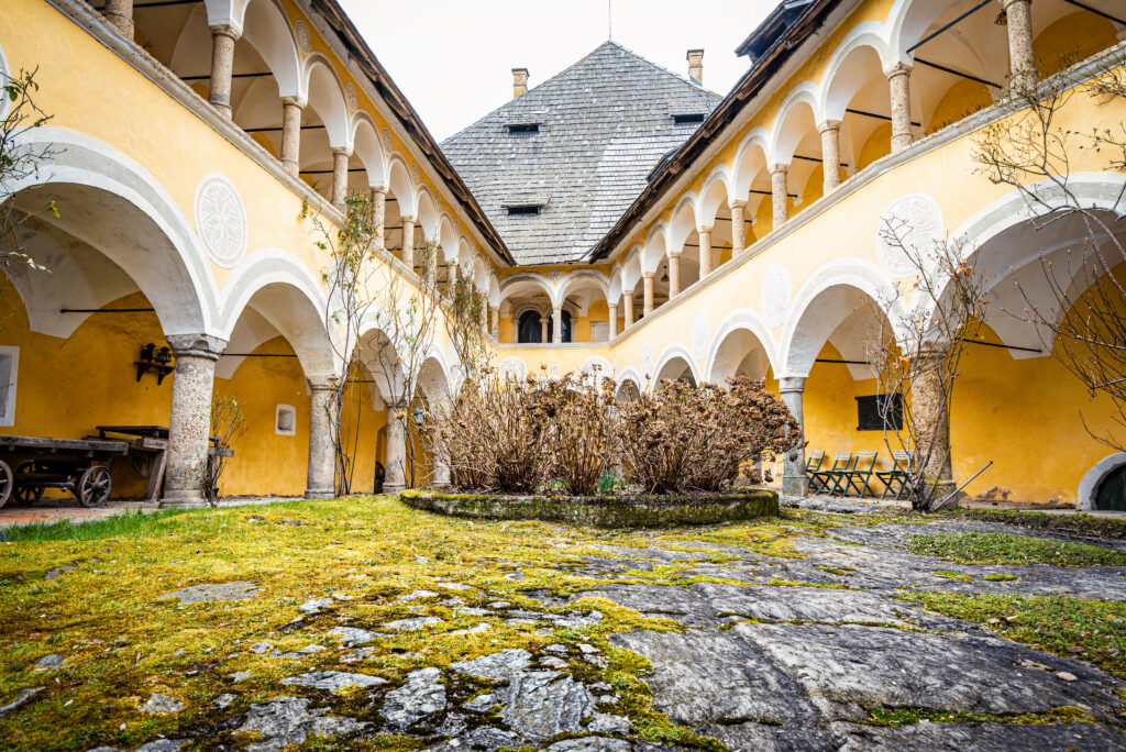 Der Innenhof mit Arkadengängen im Schloss Hallegg in Klagenfurt-Wölfnitz © Herbert Wieser/wunderkastl.at