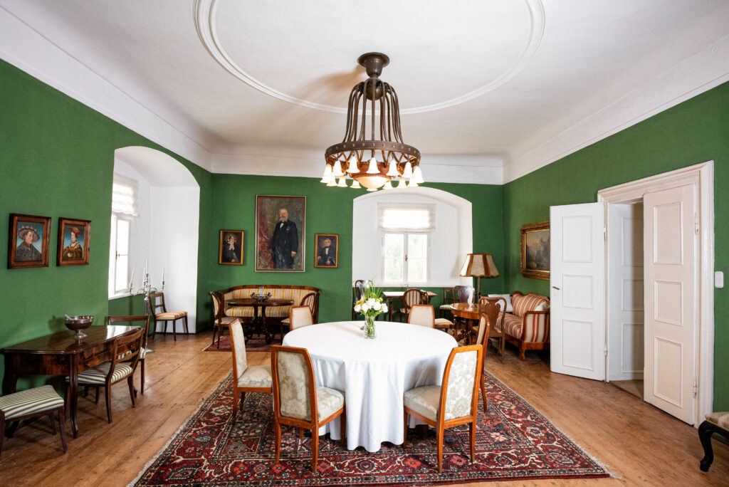 CHIC. Im Grünen Salon finden sich Gemälde von Vorfahren und Menschen, die das Schloss geprägt haben © Herbert Wieser/wunderkastl.at